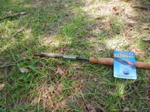 Stream movement. Threading an 11-foot noodle of a rod through brush and undergrowth is an unsolvable calculus problem. Luckily, it only takes seconds to collapse the Tenkara back to 20 inches. But what about the line? You could buy TenkaraUSA’s blue wheel thing that slips over the rod and wind the line around it, or your hand, only to become frustrated with how long that takes. BackpackFlyfishing.com has a YouTube video discussing the ideal solution. Buy two EZ Keepers, intended for holding a hook on a spinning rod, slide them on the handle and wrap the line between them. You can do this much faster, keeping the line just as organized and ready for subsequent use.