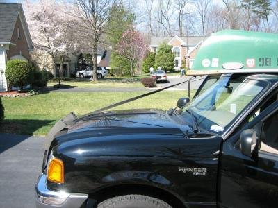 One final point – when you look at the picture on the manufacturer’s website, it shows the rear only being held by a bungee cord. NO WAY would I run down the road at 50+ mph with that being the only thing holding this on in the back! So, although this comes with the bungee cord in the picturre, I recommend you tie your canoe down to prevent a tragedy.