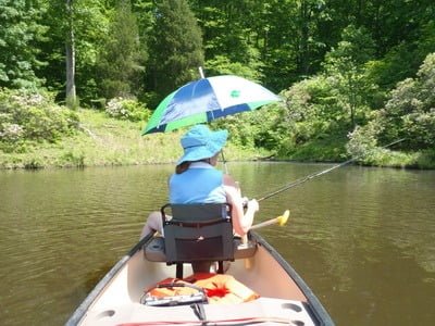 I was in trouble with the Basswife because I had not taken her fishing as much as she wanted to go last year. Therefore, on the first good day, when there was the possibility of not floating on chocolate milk, we rolled down to this small reservoir. As I pushed the canoe down the gravel ramp and into the water, it appeared to that the access creek was shallower than normal.