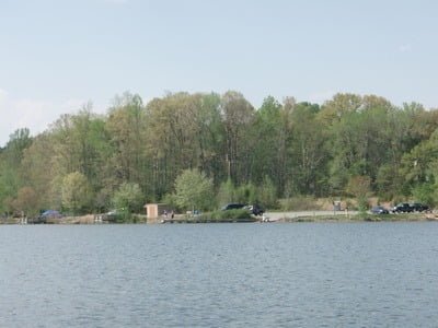 Getting There: Take exit 133 north on Route 17 from I95. Turn right on Poplar Road and follow it 4 miles. You will see a small sign pointing the public boat landing. Turn left on Stony Hill Road and follow it to the lake. The lake will pop up on your left as you drive down Stony Hill. There is a small, well maintained dirt road (left off of Stony Hill) that leads to the wide parking area.