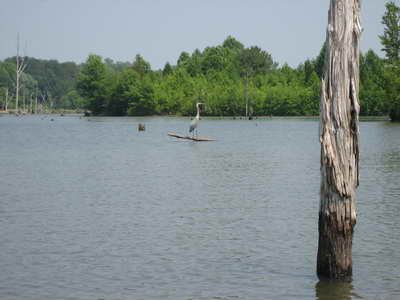 We headed out and immediately discovered the downside to the structure – you have to creep along as there are numerous stumps submerged just under the surface. The basswife was a great help in the front of the canoe as she pointed at them as they passed her (rather than looking ahead so I could steer around them) causing me to scramble to pull the motor up or just brace for a bump.