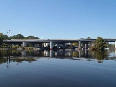 Like last time, we motored upstream and began to fish under the 123 bridge. I was amazed at how rude other anglers were. We were about halfway up, with only about 30 yards between ourselves and the dam, and another boat pulled in in the space between us. Get a clue. This river is big enough to provide everyone with plenty of space. When I turned around to look back downstream, I was also startled to see two other boats grinding their way underneath the bridge into this crowded water. The heck with that.