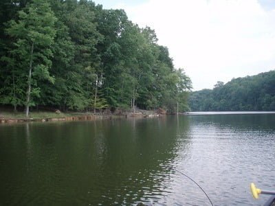We headed south out of the launch, scanning the shores for a good place to start fishing. This has to be the deepest part of the Occoquan Reservoir. My depth finder was pinging at 30 to 50 feet in some places. As we motored south, I noted the high volume of other boats fishing this part of the lake. In fact, we had to skip the first half mile of water because several other fishermen were working the shoreline.