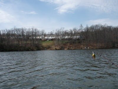 The Occoquan is a real river. It is very broad in this section and the depth runs to over 60 feet. The river cuts through a section of country that is surrounded by steep, steep hills. This makes depths of 30 feet right next to the shore common and the fishing difficult. I’ll admit it. I suck at going after deep bass. I know that you can drop shot for them if you can find them on the depth finder, but so far I have not had any success with that technique.