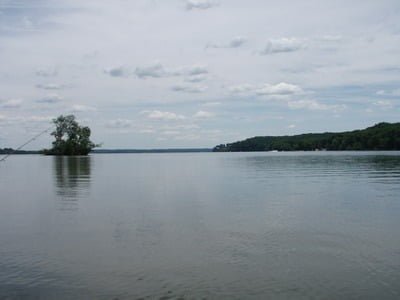 I decided to move up the shoreline and immediately came under attack. There were a lot of skidoo guys and big boats doing what they naturally do—and kicking up huge wakes in the process. Every time a series of wake waves came on us, I would have to turn the canoe into the waves to take them head-on. I would really be in trouble with the Basswife if we dumped!