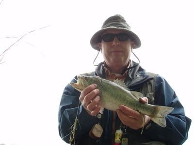 At this point, a light rain picked up, so I decided to walk back to my pack and get out my poncho. As I had a cup of coffee while I waited for the rain to end, I marveled at what a great resource small ponds can be – especially those that are protected by a walk. After the rain ended, I worked up the berm line to hit the grass growing into the water from the shore. No bass here, just another couple bluegills. That changed when I reached the northeastern corner of the pond, where the water poured out into a small creek. A few more bass fell prey to the grasshopper as I worked this corner. Not a bad day.