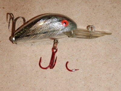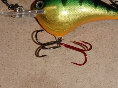 At the Bass Pro Spring Classic, Steve Chaconas discussed using a red treble hook on the middle of your plugs—particularly a top water plug. This mimics a bit of bleeding and makes the plug appear more wounded and distressed.
