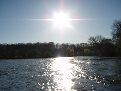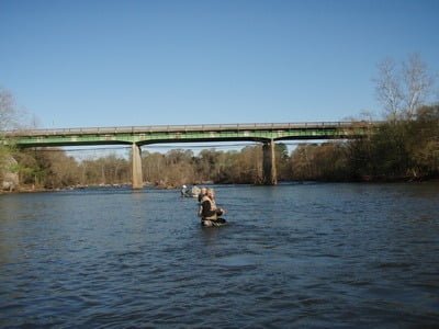 Downstream. Not as many folks on the other bank because you have to pay for parking over there – it’s obnoxious – you have to get a permit, not just pay at a meter.