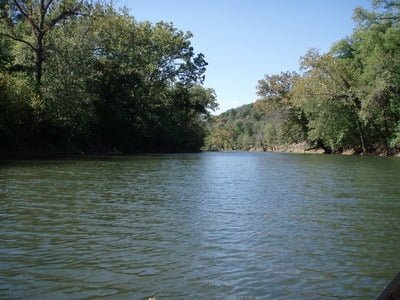Upper end where the water is shallow enough to wade (looking back towards the Potomac)