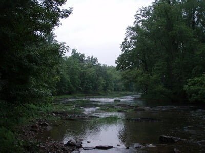 I was fighting the rain all morning on this late July day. While it rained, I would drive and recon. In one of the breaks in the weather, I found myself a well used turnout off Rt 9 north of the Forks of Cacapon. Not needing a second invitation, I pulled into the turnout and jumped out of the truck to begin fishing. The first thing I noticed was a sign posted on the tree asking people to report catching fish with lesions. That did not sound good, but I was certainly willing to participate in the study and I wasn’t about to keep anything anyway.