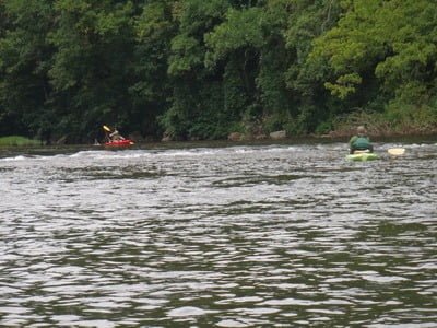 Rapid downstream of the railroad bridge – no problem on river left as shown here