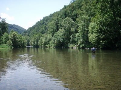 South Branch Potomac River Fishing Bottom Line: The South Branch is a year-round river resulting from the stocking program that pushes trout into the water in the spring, followed by the normal smallmouth action when the water warms up above 60°. You will not have a solitary day on the river since it is very popular and heavily pressured. However, there are miles of river, and you can find a small section you can call your own without being bothered. As a heads up, downstream from this location, the river starts to become sandy… but that’s the subject of another post.