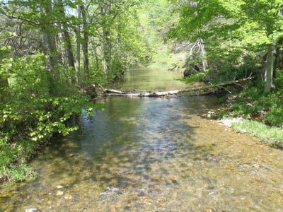 After passing the intersection with Shale Barren Trail, the road runs directly adjacent to the creek for approximately 1,000 feet with few turnouts. Other than the challenge associated with parking, access is easy since the banks are low without a protective wall of thick brush. From Tussy Hollow Road all the way up to Laurel Branch Trail, there is a dirt road that runs parallel to Flintstone Creek Road, closer to the water. As long as it has not been posted, the road provides the easiest access to most of the creek. There are plenty of deep stretches that provide an idyllic setting and perfect holding structure. Throughout its length, the streambed is covered in rocks with plenty of riffles to provide scenic interest and back up deeper water on the upstream side.