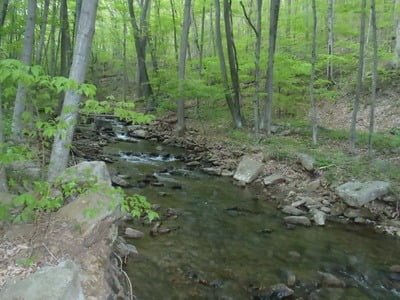 Laurel Run is a small freestone stream that weaves back and forth across Laurel Run Road. The road runs through a narrow canyon that compresses the stream, at times, to a width of 2 to 3 feet. The stream runs clear and cold across a rocky bottom throughout the stocked section. While it is stocked with a small number of fish compared to other streams in the area, pulling them out becomes a job for an expert instead of children or blind. At times, the stream is a mere trickle dribbling down the mountainside, forcing your attention to a rare deeper pool. While the stream is initially reasonably free from obstructions, the higher up the mountain you drive, the more constricted and technical the fishing becomes until reaching the bridge crossing at 39.56327,-79.01781 is approximately 2,500 feet downstream of the intersection with Willow Crest Road. Before this spot, dense forests line both banks with numerous overhanging bushes and trees perfectly designed to interfere with casting – no matter whether you fish with fly or spin gear.
