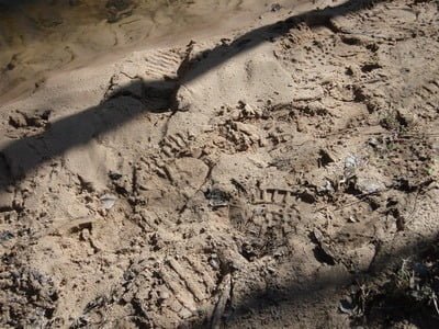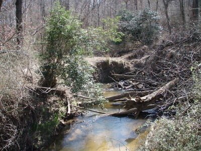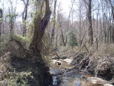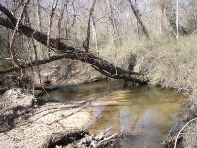 The creek is framed by steep banks that are about 6 feet high. To get into the creek, you need to pick your approach and you will be stuck in it until you find another gentle spot to climb out. In between the entrance and the exit, you will dodge and climb over plenty of fallen timber. Not an easy walk.