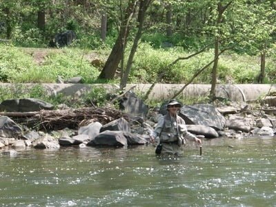 In early May, Chuck and I made a beeline for the Patapsco River to fish the upper Avalon section. A few weeks earlier, it had been stocked with a good load of rainbow trout and this was a prime time to visit. Last year, I fished the lower Avalon later in the summer and, of course, did not pick up any trout and only saw a few smallies. Beyond trout season, it seems like this section of the river is only home to bluegills and chubbs.