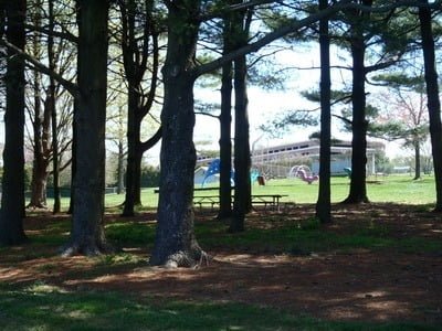 There are no obstacles to fishing this lake. It features a manicured lawn that leads to the lake’s edge, with a few scattered groves of trees at the southern end as well as at the western corner. The lake is most accessible from the south, given the sloping hill that leads to the bank in the western section and the berm that separates the lake from the museum complex to the north. The sandy bottom does not present any issues to fishing and you should be able to retrieve your lure without picking up underwater vegetation. There are picnic tables and a playground near the parking area that can provide a diversion for young anglers.