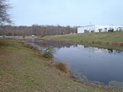 If there were ever a more pathetic, small pond, I have not seen it. The Hughesville Pond is 250 feet long and approximately 75 feet across at its widest point. It is not much to look at. The vista gazing south from the parking lot is one of a small, almost stagnant pond lying in a large ditch between a commercial area to the east and a wooded lot to the west.