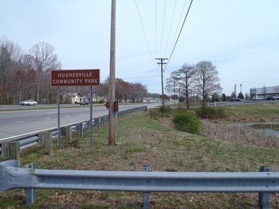 North: From I-95/I-495 take exit 7A onto MD 5/Branch Avenue towards Waldorf. Follow Branch Avenue to the outskirts of Waldorf and turn left on the Mattawoman Beantown Road (still on MD 5). Make a final left on Leonardtown road and follow it approximately 7 miles. Immediately after passing the Hughesville Pond Recreation Area, be prepared to turn right approximately 500 feet farther east. The pond is on the right; marked by a brown sign that designates the area as the Hughesville Community Park. The turn comes up quick, so be alert.