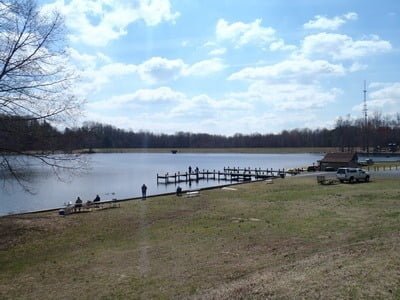 The solution to the shoreline dilemma is to rent one of the canoes or Jon boats from the concession stand or plop your own into the lake using the improved boat launch next to the pier. The boat rental operation begins in April (weekends) and with number of days of operation increasing to run from Wednesday through Sunday starting in mid-May. If you decide to rent a boat, the operation is open between 8 AM and 6 PM. Be off the water before dark since the gates slam shut at 8 PM.