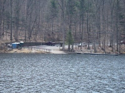 Cunningham Falls Lake (also known as Hunting Creek Lake) is the major feature of Cunningham Falls State Park. The man-made lake catches the water from the scenic Cunningham Falls that can be viewed at the end of a half mile hike. At 78 feet, Cunningham Falls is the largest cascading waterfall in the State. In addition to stocked trout, the lake includes a good population of bass, crappie, and catfish. While there are places to fish from the shoreline, this is primarily a boating lake with electric motors only. The boat launch is well-maintained and offers quick access to the lake for a small service fee. A concession rents boats during the busy summer season.