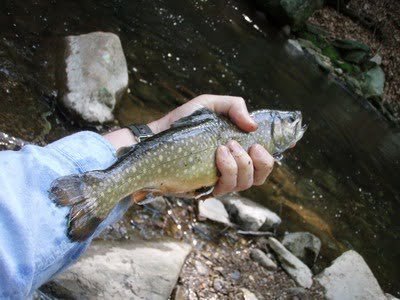 Since he had just hit the section below me, I skipped down about 50 yards and found another nice pool. This was as good a place as any, I pretty much low crawled up to the stream – hands and knees, propped myself up behind a rock and started working it again. There were a bunch of little brown insects fluttering around. Since I am not experienced enough to actually know what they were, I tied on several different small brown looking flies in an attempt to mimic them since the trout in this pool were feeding on the top.