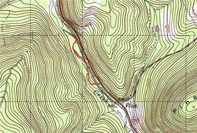 In this entire stretch, I only found a few pools or deep cuts that would be notable. The farther up I went, the more it seemed like I was moving into a dead zone. According to the books, there is a good brookie area way up at the top above Lantz. I was south of Lantz in this section, and it was clear that they had not been able to penetrate in this direction.