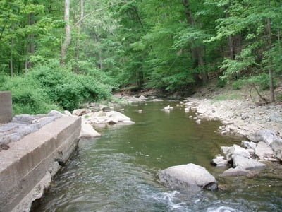 So, what do the experts have to say? Gelso and Coburn, who I trust, state in Guide to Maryland Trout Fishing that Owens has a “good holdover rate and some natural reproduction of brown trout”. They go on to indicate that stocking occurs along the entire stretch and relate stories of numerous trout popping up all over the place, even in the dead heat of summer, their survival enhanced by the thick tree canopy shading the water. With that background, I headed over to Owens on a bright May Day. I’ll comment on the middle section of Owens in a later post and only focus on the lower section here.