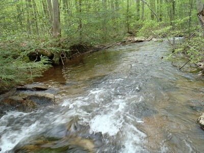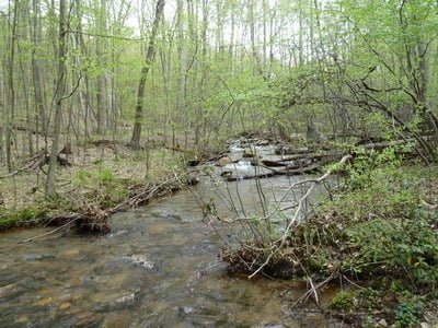 Fishing the stream is simple; pick a challenge or an easy day. For a challenge, fish upstream into the canyon from the junction with Friends Creek, where there is a broad turnout near the bridge. The creek features a stair step of small plunge pools that continue upstream to approximately 39.52955, -77.46664 where the road heaves back into view. From that point up to 39.55514, -77.46209, the road follows the stream and offers up plenty of places to park within 5 to 20 yards of the water. The banks do not present a challenge to enter or exit the stream. Typically, they are only a foot or two above the water level.