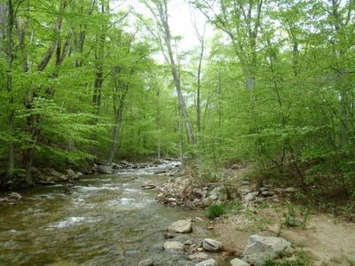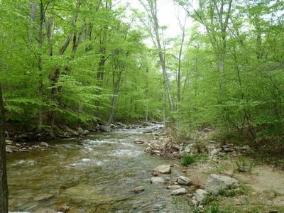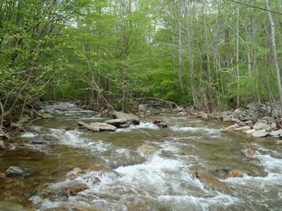 The creek is 20 feet wide, scenic and runs over a rocky bottom that is devoid of sand. There is a trail adjacent to the creek that offers easy access. Tall trees grow to the water’s edge and the low hanging vegetation is not oppressive, allowing anglers to move either in the creek or on the bank. The creek is shallow with fish available in the deeper pools. Those same pools are popular with hikers who want to flop into the creek and cool off during the warmer months.