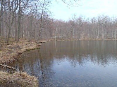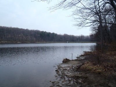 From Frederick MD, drive north on US 15. Once past Thurmont, turn left onto North Franklinville Road followed by a right onto Orchard Road. Continue onto Kelbaugh Road and make a slight left onto Black Road. Take the right fork from Black Road onto 3 Springs Road. The road undergoes a name change to Eylers Valley Road shortly after the fork. Eventually, Eylers Valley Road will make a 90° turn to the left at a “T” intersection. To not turn. Continue straight ahead on Hampton Valley Road. The lake is about 1.2 miles from this intersection on the left.