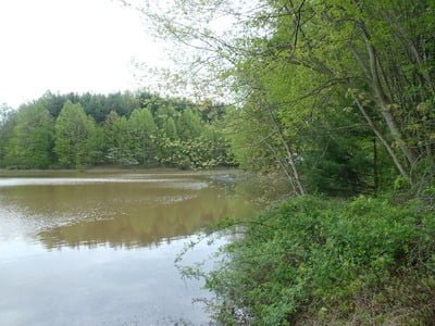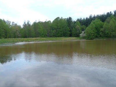 Once on the shoreline, you can follow a small trail around the lake. But fishing from the shore can be problematic given the dense forest that grows to the water’s edge. There is a substantial mat of underwater vegetation that crowds the shoreline on the eastern corner near the dam and at the southern tip. On the northern end, the water is slightly deeper along the dam line. However, casting can be obstructed by the cattails that pack the shoreline along the dam’s edge.