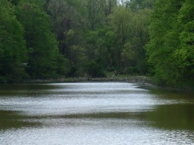 In 2004, Urbana Lake (also known as Chevy Chase Lake) was declared a potential excess property the State could sell. It’s now 2011, and the property remains under DNR control. Therefore, I do not think this interesting fishing lake will soon be abandoned. The 2.8-acre lake sits at the southeast edge of the 60-acre Urbana Lake Fish Management Area. What makes it interesting is that it provides a remote feel even though it is within 500 feet of the buzzing traffic on I-270.