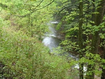 For those who enter the creek from the Savage River Reservoir side, the best turnoff is 1,000 feet prior to the spot where Spring Lick Road takes an abrupt bend to the north. Do not be tempted to follow the old road that hangs off the ledge to the creek. It is narrow, severely eroded and while you can drive your vehicle down it to reach the edge of the creek, chances are you will find yourself upside down instead of right side up. At this spot, Spring Lick Run slams into Crabtree Creek and creates a set of good pools that will, appropriately, lure you farther west into the deep gorge between the surrounding mountains.