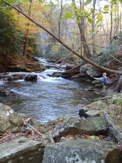 Since we had the long drive back to northern Virginia in front of us, we only hiked in 1.5 miles, fishing up the river from the junction of the side trail and the main road, and did not get all the way into the wildlands. We only had one small brookie to show for the sweat.
