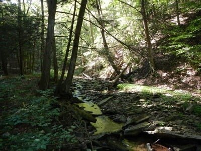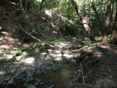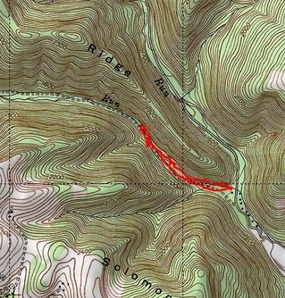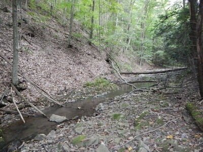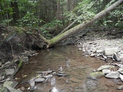 Doing some quick math, the stream drops only 545 feet between its intersections with Big Run Road and the sharp turn it takes to the south 3 1/2 miles later. The good news is that there is a well-defined and easy-walking trail that generally parallels the stream throughout its entire length. The trail is not adjacent to the stream, so you must walk over to check out the water. Therefore, the trail only becomes an advantage for your return since you must be next to the stream to find the scattered holding positions.