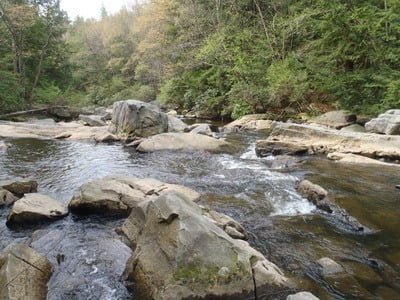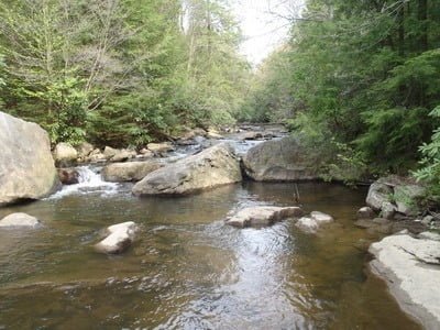 Unfortunately, the trail is only good to move from point to point since dense vegetation lines both banks forcing you onto the narrow, rock lined shoreline or into the creek itself to actually fish. Exercise considerable caution when the creek is running high since American Whitewater advertises that Muddy Creek offers up a class V whitewater experience.