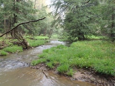 The stream is scenic, with tall trees framing uncongested banks to provide a relaxing mountain fishing experience. The deep sections are usually where the stream bends its way through a curve or enters a small gradient break to dump into a larger downstream pool. Additional deep spots where the water gouged around rocks or fallen trees. The bottom is a mix of mud, sand, and rocks. As with any mountain venue, there are places where the fishing becomes technical, with overreaching branches and bushes providing protective cover for the skittish trout.