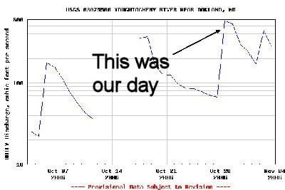 We knew this was going to be a loser, but since we were there, we spent about an hour fruitlessly fishing as we worked north from the falls. Not a single hit and certainly no elephants (granted the DNR page indicated that they were stocked upstream and we were down).