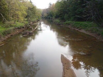 Unless you fish from a canoe or kayak with a greater interest in paddling than fishing, do not become elated at the prospect of over 12 miles of stocked water. There are only a few accessible points for kayakers, the stock truck or wading anglers. Moving west, away from Oakland, the worse it becomes. At the start of the stocked section in the tiny village of Crellin, the river is a muddy, silty mess with little to recommend it. The river is wide and shallow consisting of high banks with scattered trees throwing some shade over the water. Since the river runs through town, a mix of residential and industrial buildings peppers the banks conspiring to create an unfriendly, unattractive vista. In short, not a compelling or pleasant fishing location.