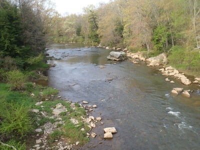 Thankfully, by the time the river reaches the Liberty Street bridge crossing miles downstream, it is dramatically different. The bottom is now uniformly coated with a layer of rock with large boulders providing random points of interest, creating pools and holding locations. Access the river via the fisherman’s trail on the west side of the bridge. Rocks and boulders line the banks and hold back the vegetation. There are still plenty of trees to provide interesting scenery as well as a little bit of shade.