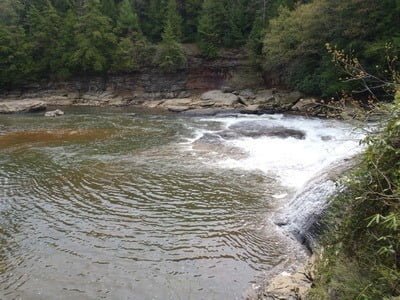 The next access point is at the Swallow Falls State Park. There is a small turnout, outside of the park (no fee), on the east side of the bridge. Only a fool would wade in the river downstream since Swallow Falls is only a short distance away. There is a trail leading from the parking lot to the north side of the bridge providing access to the upstream river. However, unless you are willing to walk over a mile, be prepared for a total waste of time. Upstream of the bridge, the river bottom consists primarily of a slick, flat rock shelf that holds no structure and prevents the creation of pools or the generation of forage to attract fish. In the far distance, you can see some large boulders poking up out of the streambed and those mark the first place where the fishing becomes acceptable. The flat shelf continues upstream until 39.486957,-79.408566 where rocks and pools take control.