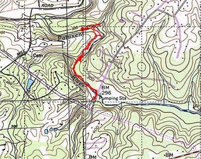 I walked upstream a little bit to get away from the road and watched the water as I went. The streambed is typical Maryland. It’s sandy with a few rocks and plenty of fallen logs and other structures that provide good holding areas for fish. Granted, I was looking for trout, but I found carp! This part of the river is full of big ones! As I fished upstream, I continued to throw patterns in search of trout without success. On the day I was here, the water was running medium-high, and it was difficult to wade in the stream below the junction of the small feeder creek that you can see joining the river from the Northeast. Above that point, the river shallows out enough to allow me to move in the stream bed, although there were frequent deep pools I had to circumvent. At the top of the red line, I gave up on trout and switched my attention to the carp.