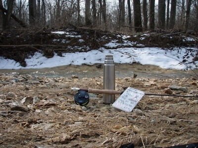 Exactly what you need on a chilly day standing in 34 degree water – some coffee, a fishing rod and a few flies
