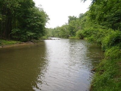 This spot is the northernmost edge of the extensive recreational area that parallels the stream throughout its remaining stocked distance. Park at the end of the large asphalted parking lot at the north end of the sports fields. The broad path you encounter at the eastern end quickly transitions into a narrow dirt trail that intersects the stream 25 yards from the parking lot. At this point, the stream has completed its metamorphosis. Instead of being mostly rocks, it is now mostly sand and lazily drifts downstream with a width of 20 to 30 feet. There is nothing compelling to make this a fishing destination and that holds true for the remainder of the stream down to the stocked terminus at the East-West Highway.