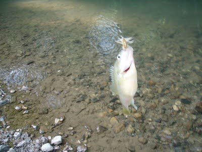 There were plenty of sunfish and a few fallfish to give a tug on the line, but no trout.