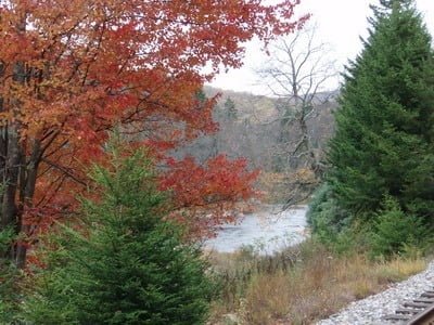 As I was fishing, I heard the rumble of a train approaching and was surprised to see that the Cass Scenic Railway runs along the Cheat River. After waving at the engineer, I repeated that for the three carloads of tourists who had come to see the fall foliage and were probably startled to see a crazy man standing in the river on a freezing day fly fishing.