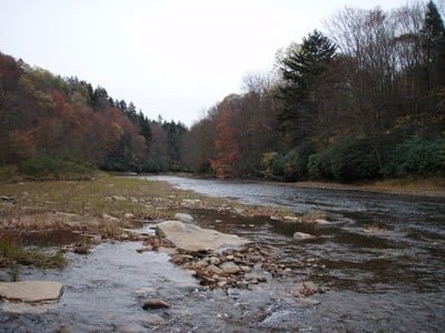Getting There: Locate the town of Durbin, WV. Head north on US 250 and be alert for the bridge over the Cheat River. About 3 miles from the bridge, turn right onto PR 92. It runs up a ridge and the access points to all of the Shavers Fork spots are turns to the right from this road. Follow the road until you see the sign for FR47 and follow it to the river.
