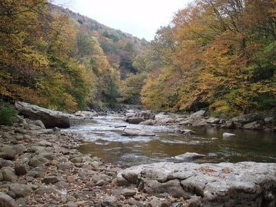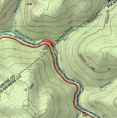 Getting There: From Marlington, WV, go north on US 219 / Rt 55. Turn left (west) on Rt 150. Turn north on Williams River Road (PR 86) and drive 9 miles to reach this spot.