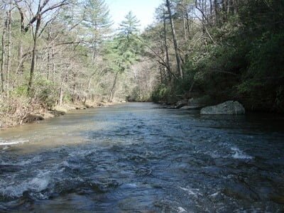 Once you walk the third of a mile and drop 204 feet to get to the river’s edge, you end up on old forest road 39E. This road, while overgrown, connects all three of the delayed harvest areas. If your intent is to have a backcountry experience, the road is the ideal trail to use to get away from the high pressure around the three access points. However, I don’t think you need to worry about pressure at any of these locations as a result of the short, but strenuous, hike to reach the river.
